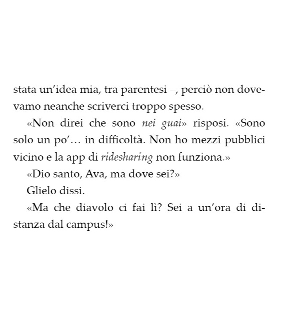 Pensato per un pubblico new adult, è in realtà un romanzo adatto a chiunque voglia immergersi nel racconto di un amore travolgente ed emozionante, su cui, però, aleggiano fantasmi del passato, con vecchi incubi che riaffiorano e tormentano i protagonisti.
