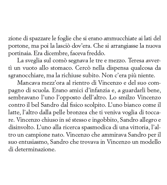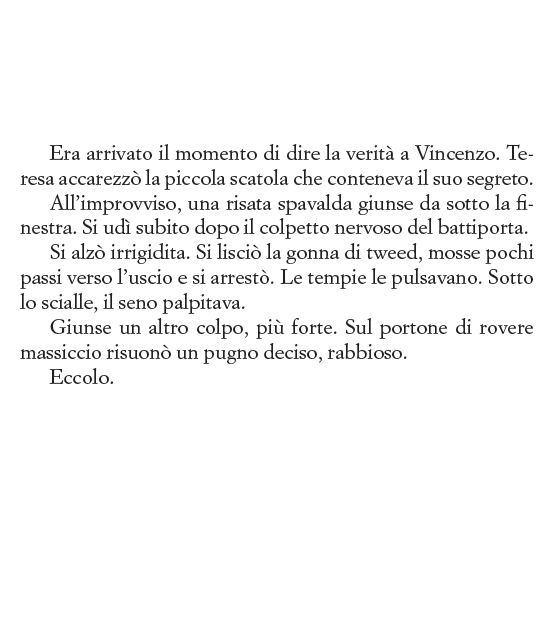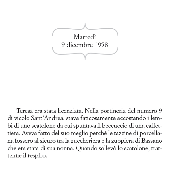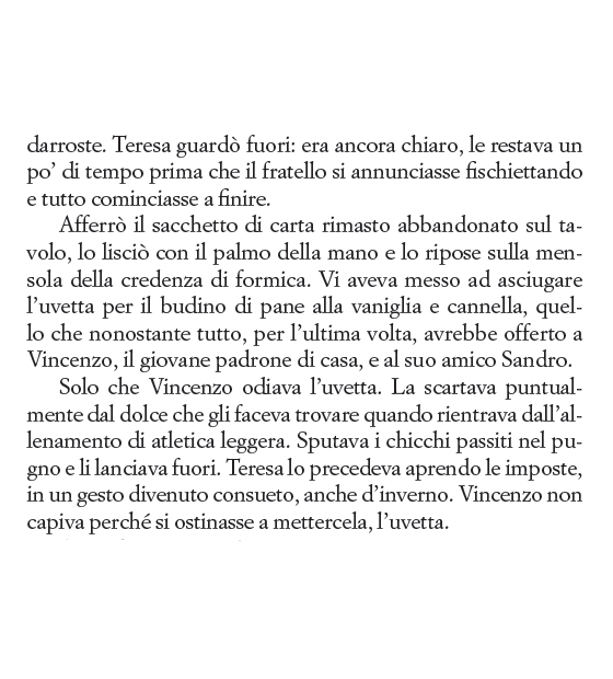 Solo una volta uscita, però, quando prenderà servizio come portinaia in un palazzo di vicolo Sant'Andrea dove vivono due sorelle legate all'uomo che, durante il suo internamento, l'ha torturata e le ha portato via il bambino, la donna potrà cominciare la sua ricerca per tenere fede alla promessa fatta alla sua amica. Riuscirà Teresa nel suo intento? In un climax crescente e vertiginoso, seguiremo la protagonista cercando di scoprire quale prezzo si è disposti a pagare per sentirsi liberi.