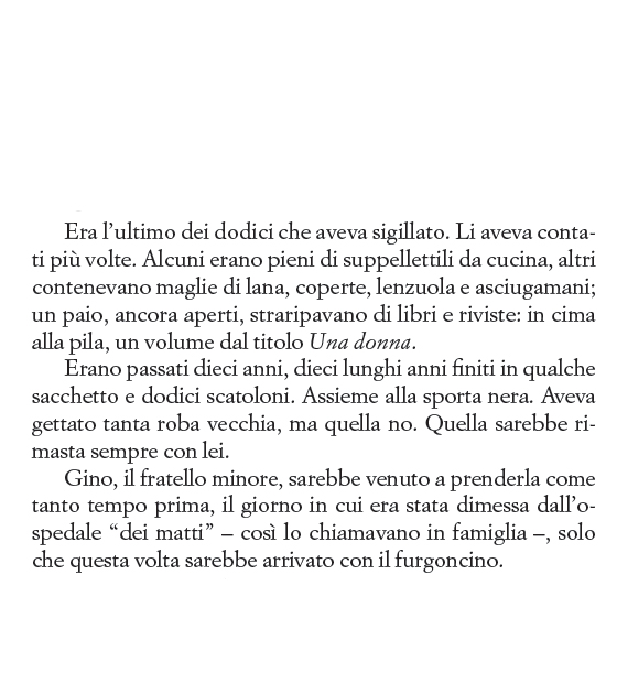 Tante persone fondamentalmente sane venivano rinchiuse senza un valido motivo, soltanto perché erano caratteriali, oppure sì, erano malate ma di malattie che avrebbero potuto essere curate senza un ricovero; ma succedeva anche – come era successo a lei – che qualcuno abusasse del proprio potere e togliesse di mezzo qualcun altro facendolo ricoverare